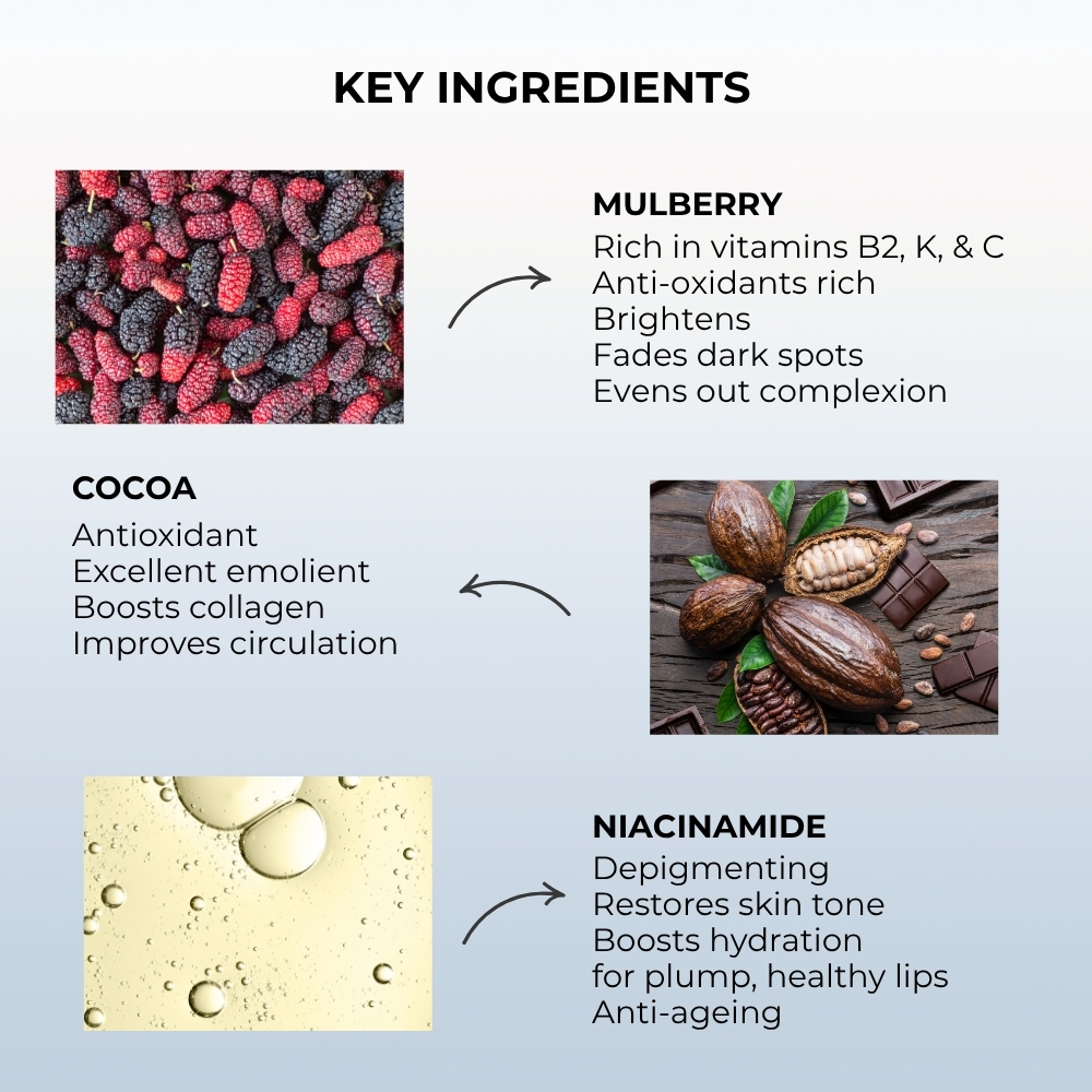 2. Depigmenting properties prevent discoloration and restores the lip’s natural colour.