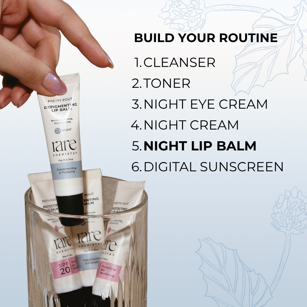Apply an even layer on lips as the last step of your night skincare routine.